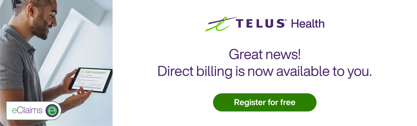 Accredited FKQ members can register for TELUS Health's eClaims service and use it free of charge to offer direct billing in their practice. The eClaims platform allows you to bill insurance companies directly on behalf of your clients, simplifying the payment process and improving their experience