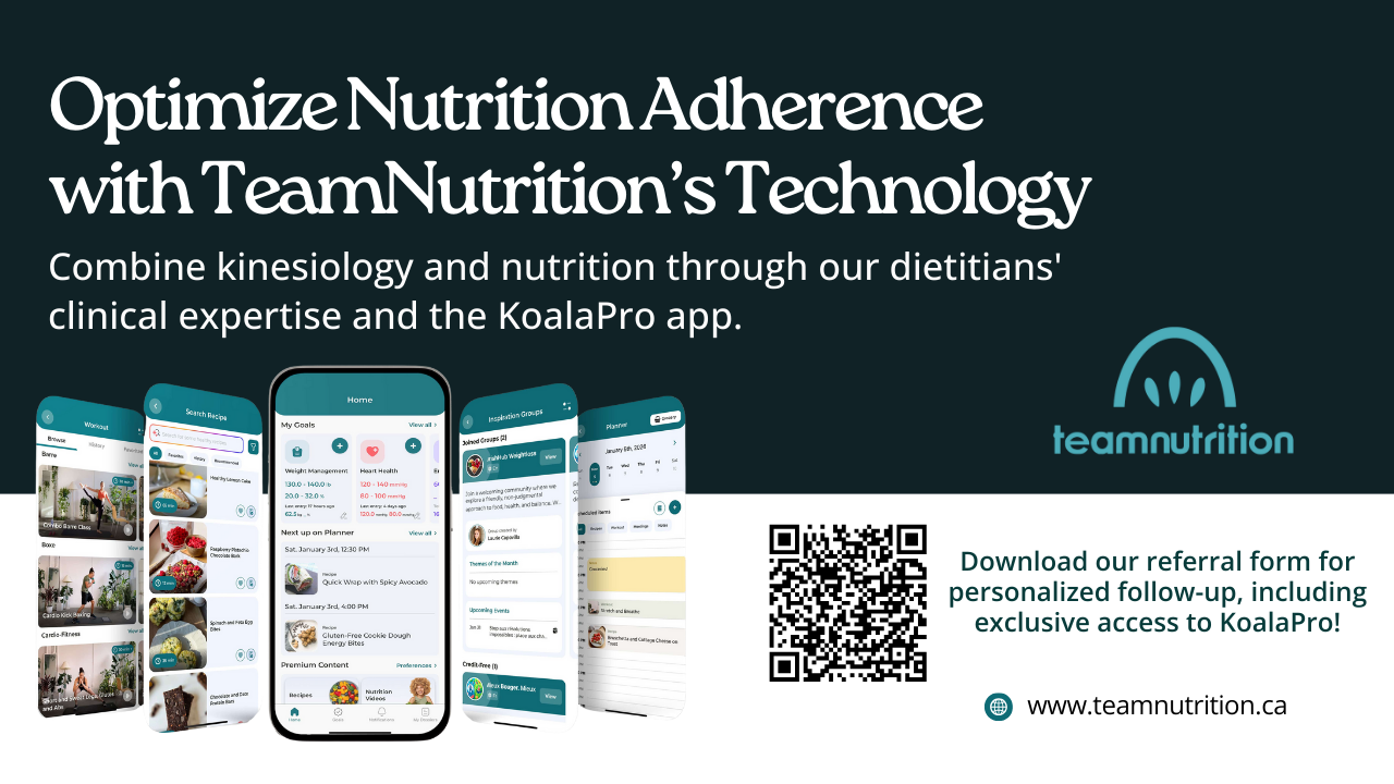 Entirely developed in Quebec and in operation for 15 years, the platform stands out from all other resources, for being prescribed since 2012 by the University of Montreal Health Center (CHUM) and since 2014 by the Montreal Heart Institute and Francophone Physicians of Canada, in addition to being recommended by several physicians and dietitians. Kinesiologists can therefore rely on SOSCuisine when the opportunity arises to refer their clientele to a reliable nutrition resource.